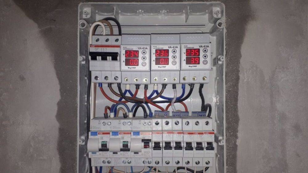 Дополнительная защита — монтаж раздельных УЗО на осветительные элементы или розетки. В качестве гарантии безопасности при сборке системы стоит использовать реле контроля напряжения. При неисправности проводки этот блок обесточивает схему, исключает поломку электрооборудования. Желательно крепить блок на рейку во вводном распределительном щите.
