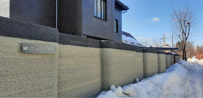 Отдельный вид глухих ограждений предлагает, например, Завод 3D-архитектуры NOVACON – крафтовый забор из искусственного камня. Производится в России он сравнительно недавно, но уже успел заслужить доверие застройщиков и архитекторов.