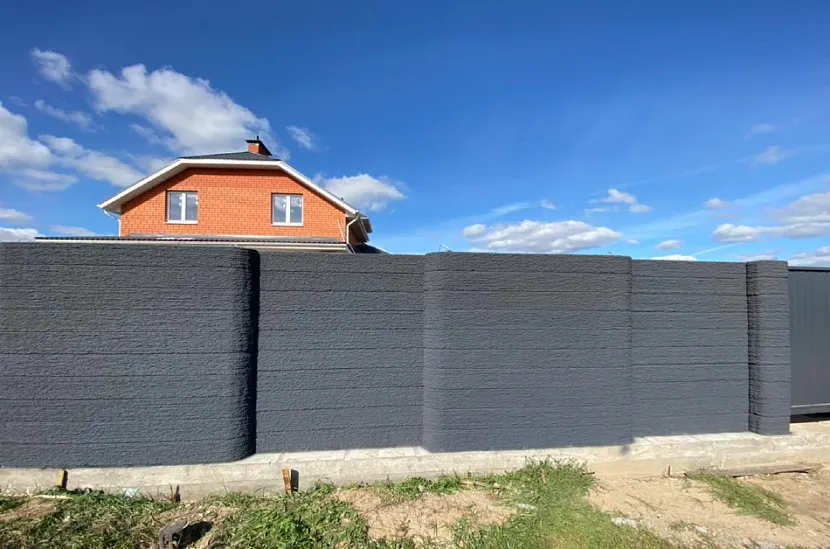 Забор из искусственного камня, выкрашенный в графитовый и серый цветаИсточник novacon.pro