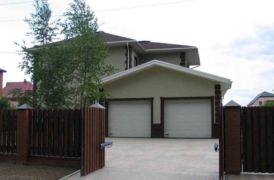 Проблему с воротами можно решить, грамотно выбрав их тип в зависимости от способа открытия створок. Например, это могут быть навесные ворота или секционные. В частности если гараж является очень низким, но есть какое-то пространство в сторону, можно вставить скользящую дверь в разрезе на боковой стене.