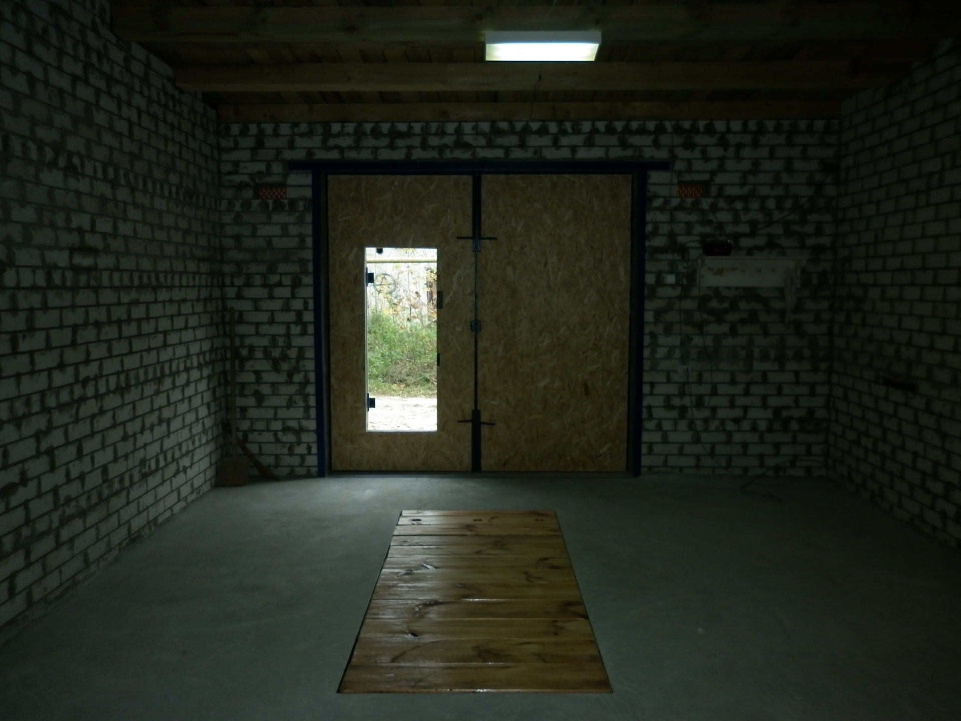 - те же размеры от дверей авто до стенок строения или до стеллажей, это для того, чтобы дверцы свободно открывались, не касаясь поверхностей напротив.