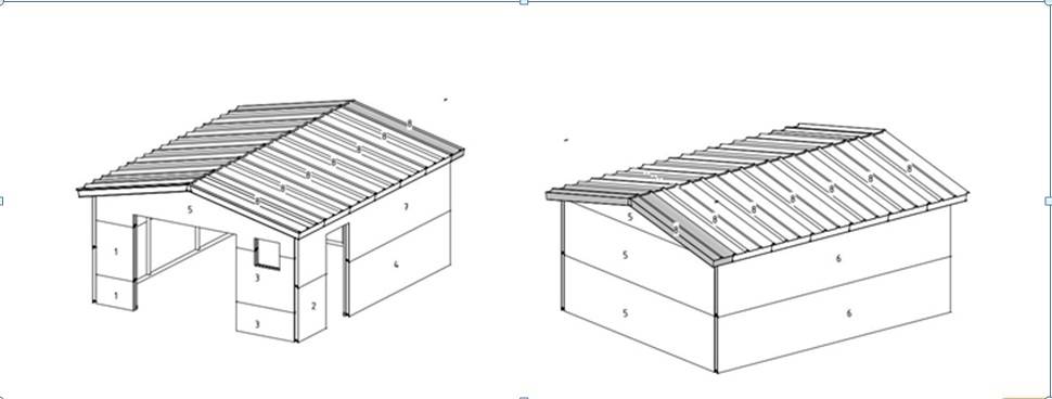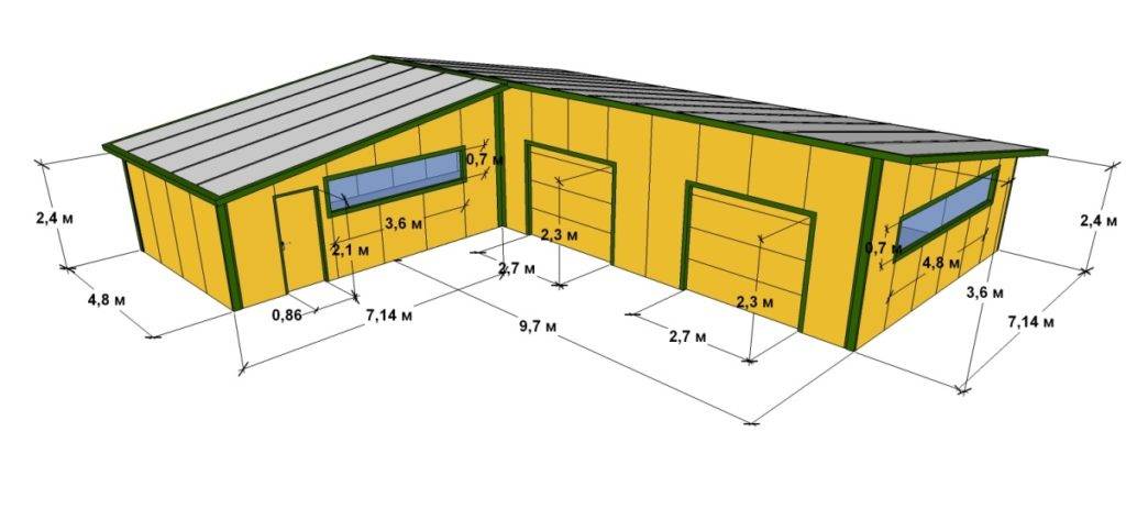 В схеме могут быть отображены параметры кровли, стен и других составляющих конструкции. Главное, чтобы ширина гаража была на 1 м больше автомобиля.