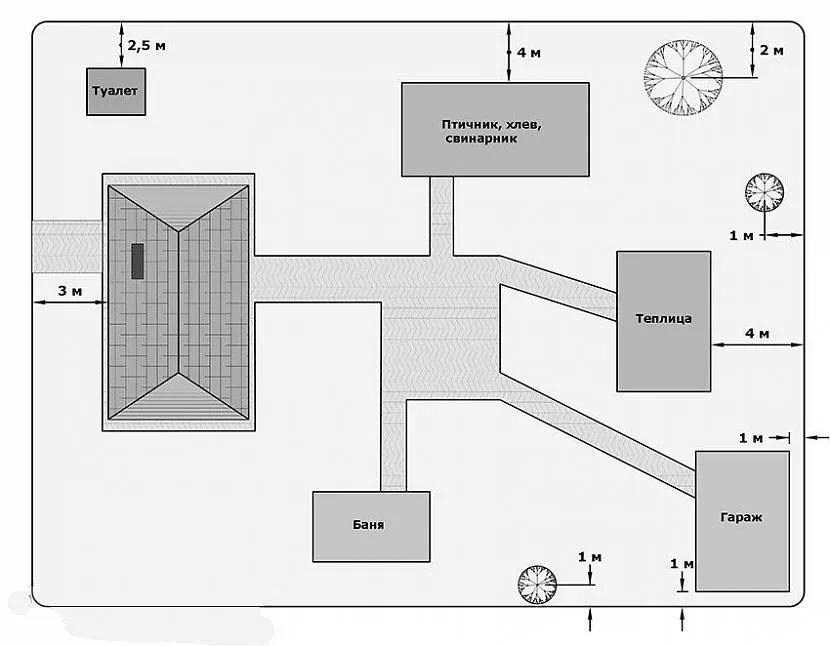 Схема правильного расположения гаража на загородном участке Источник bankfs.ru