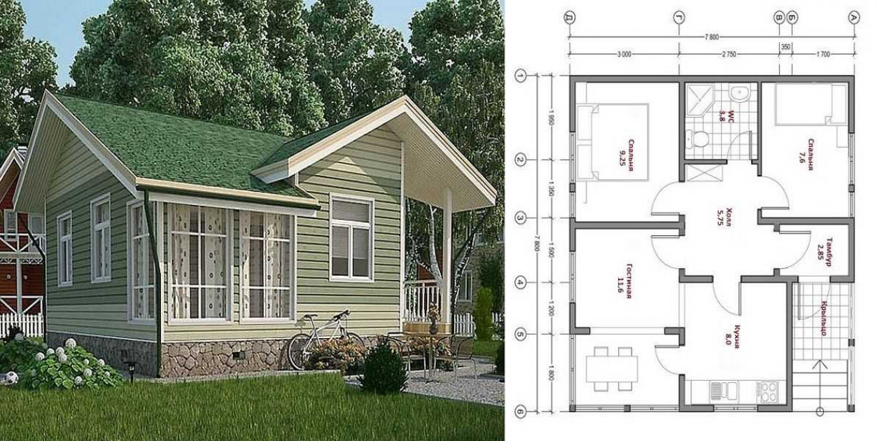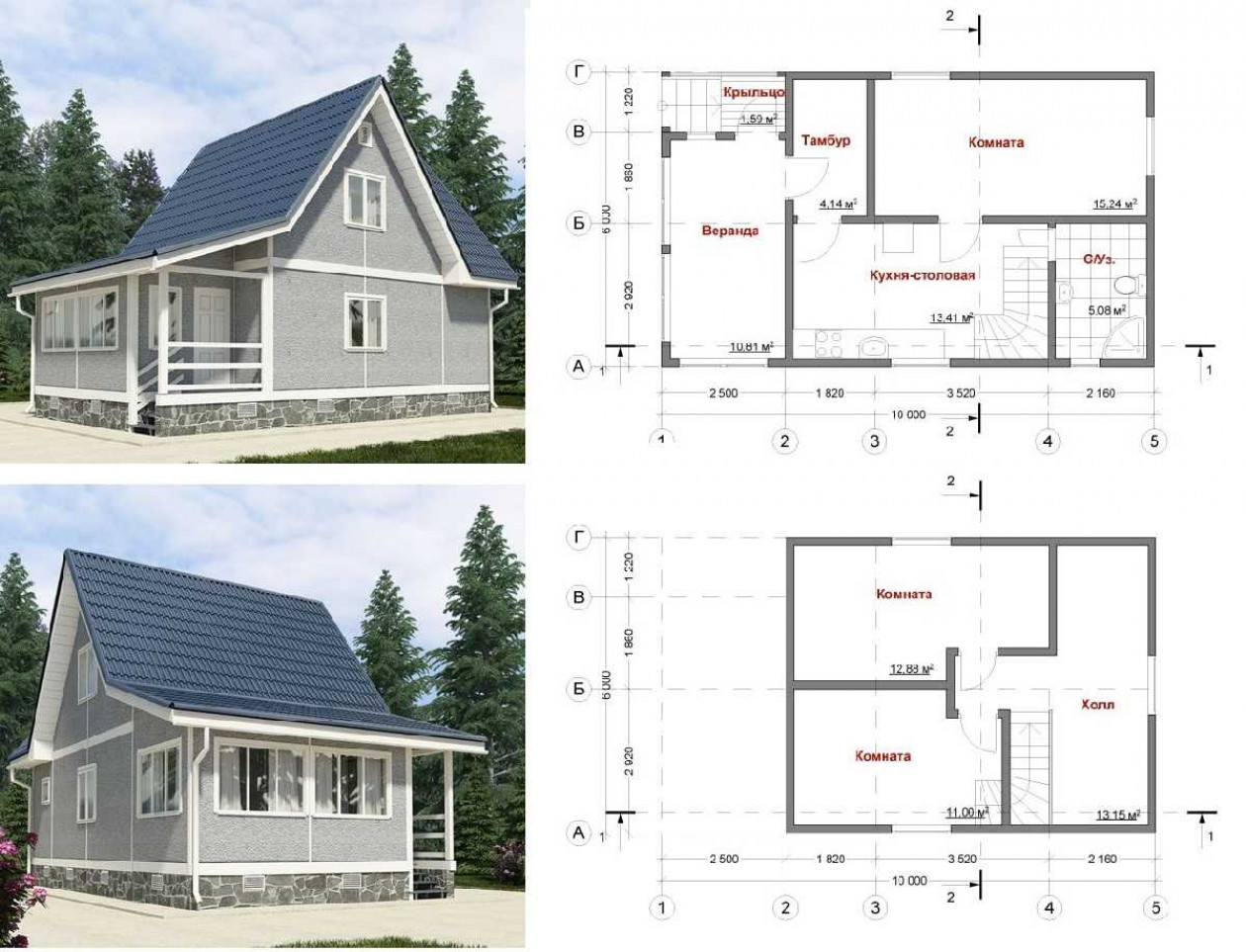 Обратите внимание, что приведенные выше проекты дачных домов с верандой имеют общий фундамент. Это надежно, так как даже при весеннем пучении почвы подвижек не будет
