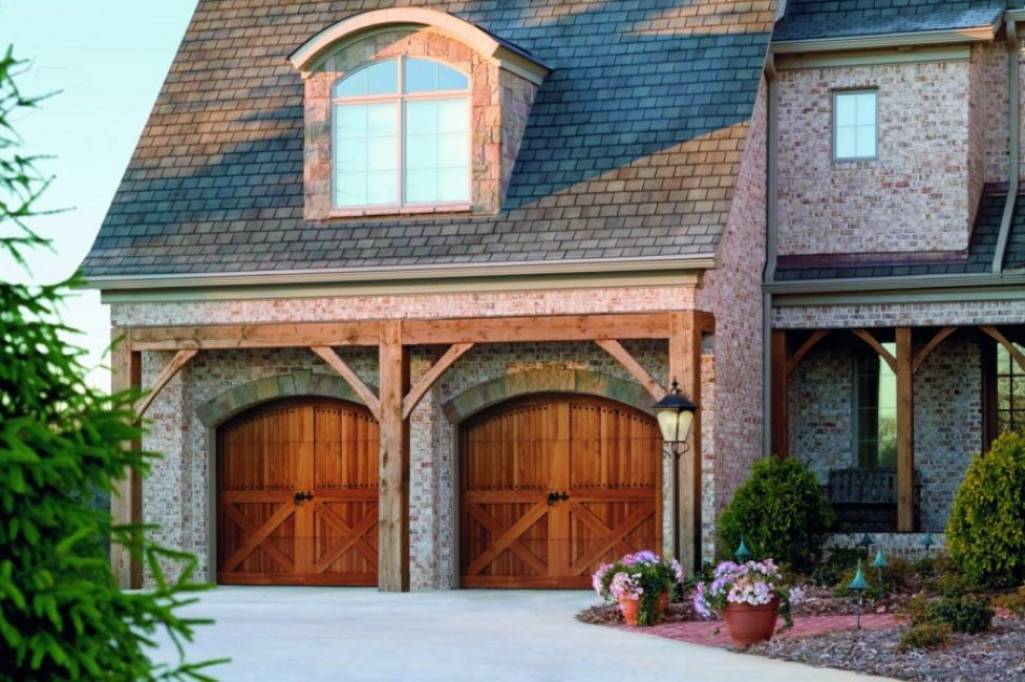 Пристроенный деревянный гараж должен органично сочетаться с жилым строением. Наиболее популярный вариант размещения – по бокам от центрального входа в дом, подальше от окон.