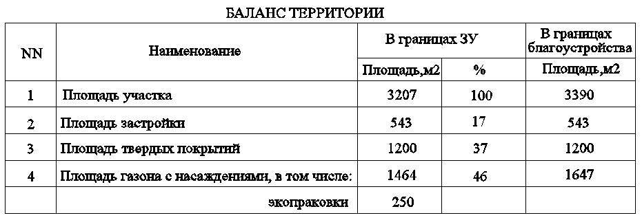 При проектировании экологичных покрытий автостоянок следует площадь этих автостоянок включать в общую площадь газонов. При этом баланс территории участка будет выглядеть следующим образом.