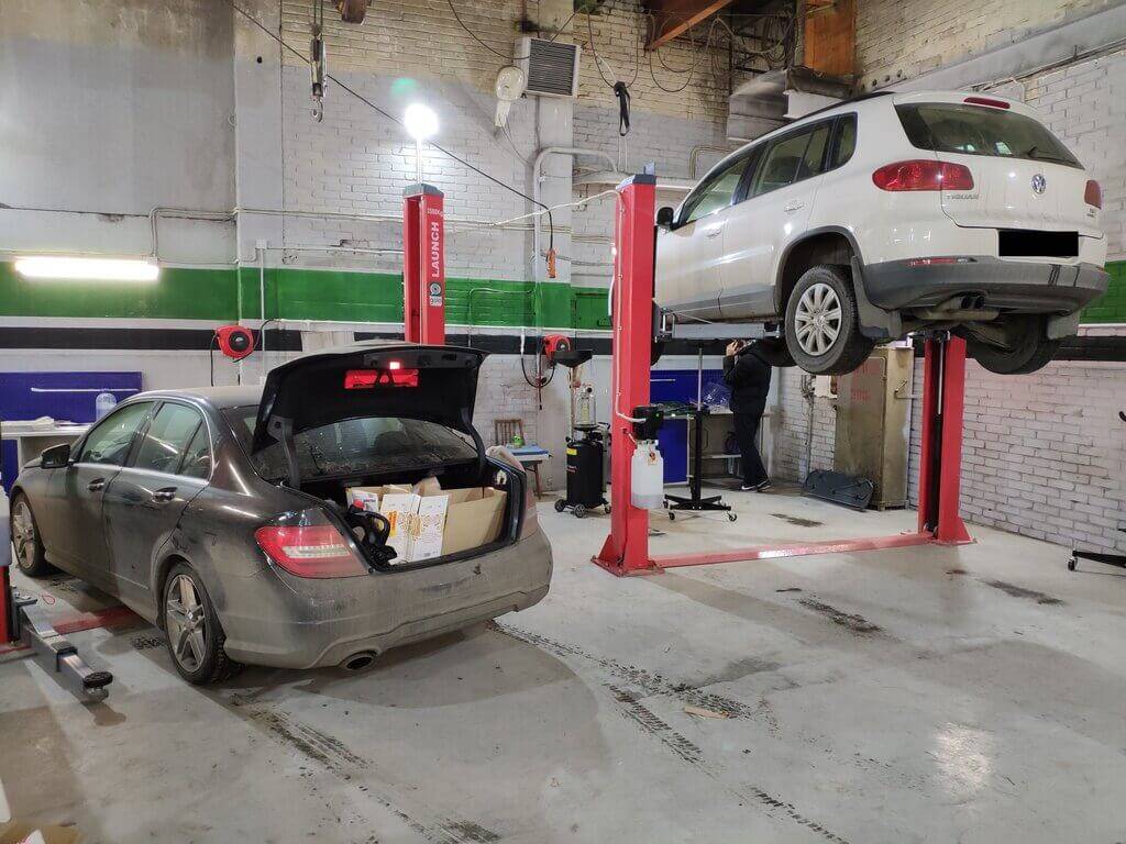 - подъёмник (хотя бы один двухстоечный), но в идеале их должно быть несколько. Оборудовать же пост четырёхстоечным подъёмником (большая грузоподъёмность, которая доходит до 4 тонн) по карману не каждому;