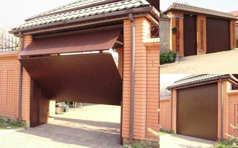 - секционные – полотно ворот состоит из нескольких металлических секций, которые убираются вверх и размещаются на потолке гаража;