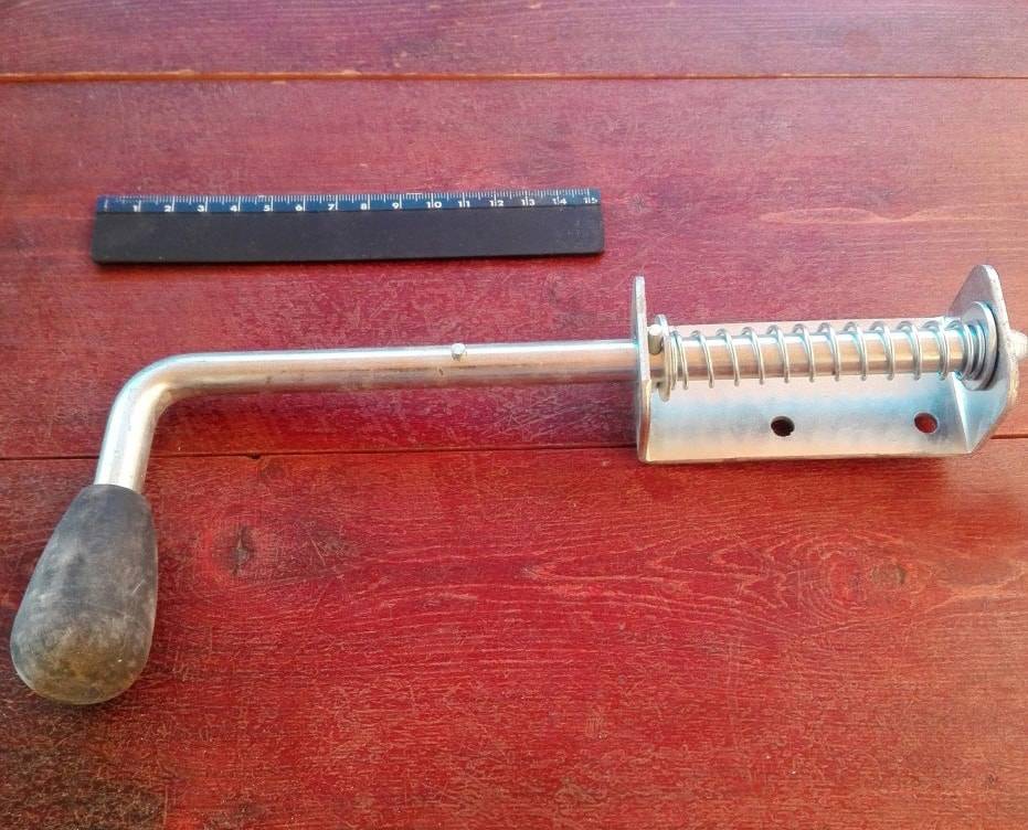 Первый способ с использованием пружинных задвижек. Такой вариант подходит, если существует еще один вход в гараж. Задвижка устанавливается на внутренней части ворот или стены. Такой вариант запирания ворот устанавливается в стандартной комплектации, остальные варианты ставят только по просьбе заказчика.