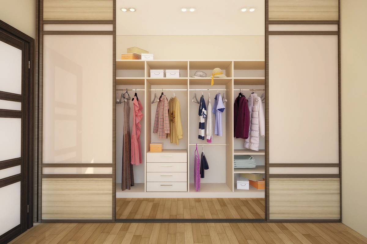 Перед созданием комнаты нужно примерно представить её размеры. После определить, для скольких людей она будет предназначена. Когда всё пространство принадлежит одному человеку, то распланировать гардероб проще, а если помещение будет во владении всей семьи, то у каждого её члена должна быть своя личная зона.