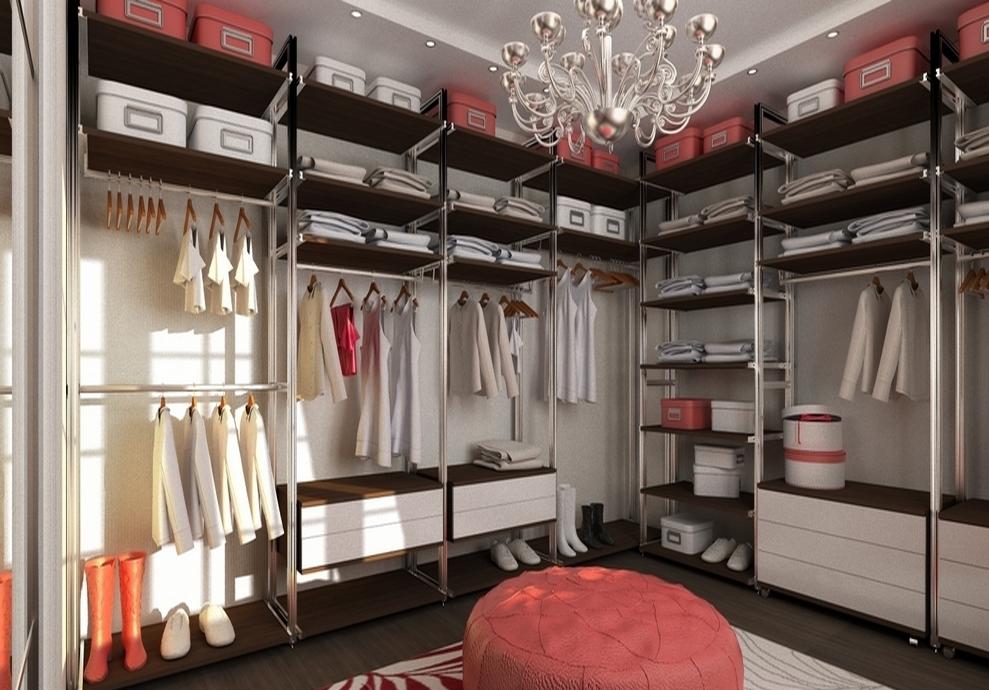 - Для оборудования женской гардеробной необходимо не забыть выделить место для хранения сумок и украшений.