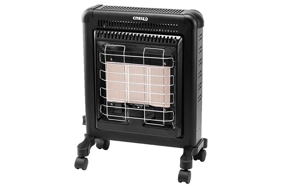 В дополнение к газовому керамическому элементу модель оснащена электрическим 2-киловаттным ТЭНом и вентилятором, обеспечивающими конвекционную передачу тепла. Способен обогревать помещения до 80 м2;