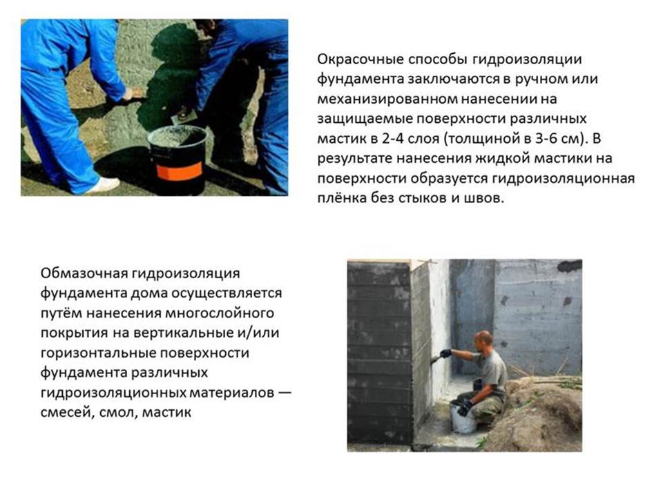 Горячую мастику наносят в 2–3 слоя на поверхность со стороны увлажнения или гидростатического напора. С наружной стороны её защищают.