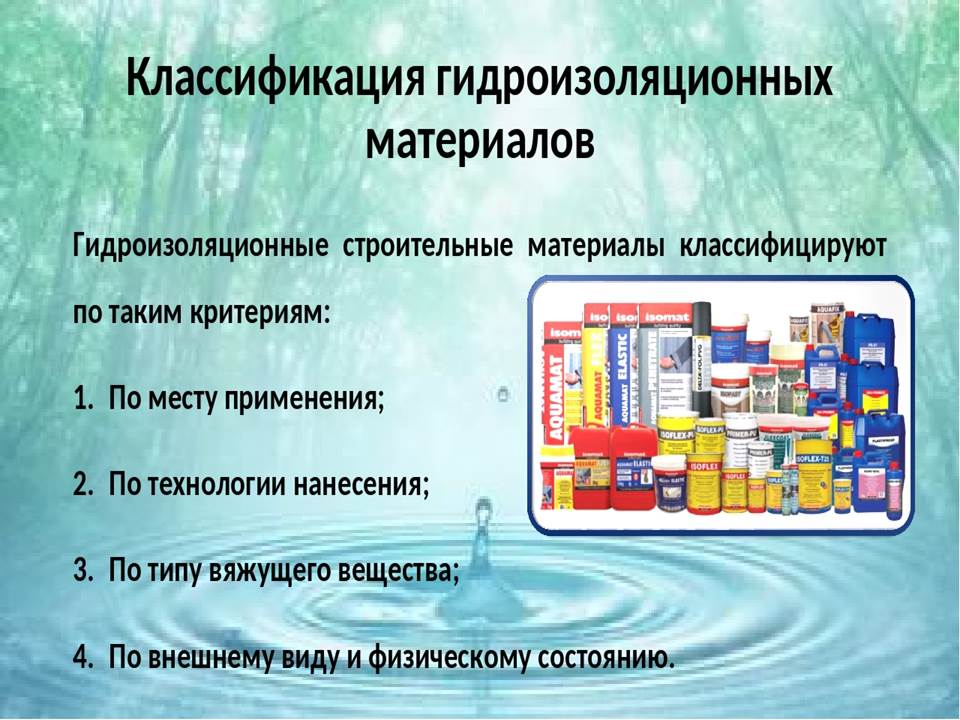 - По каким признакам классифицируют гидроизоляционные материалы?