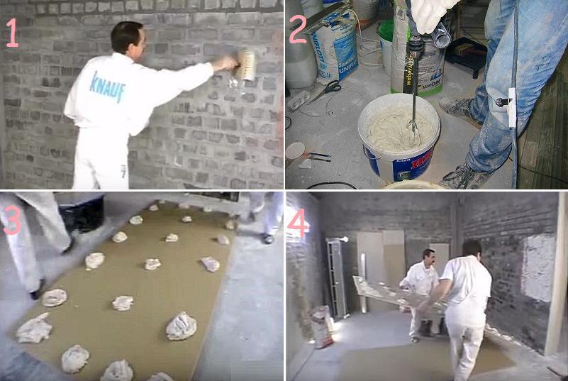 Грунтование, замешивание клея и нанесение его на ГКЛ