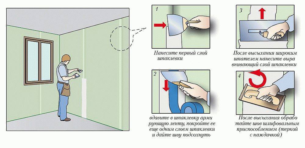 Поэтапное описание процесса по заделке швов между листами гипсокартона