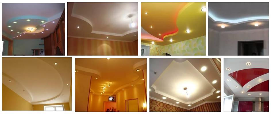 Если на базовую поверхность устанавливают только подвесные осветительные приборы, то гипсокартонная конструкция предоставляет больше возможностей: