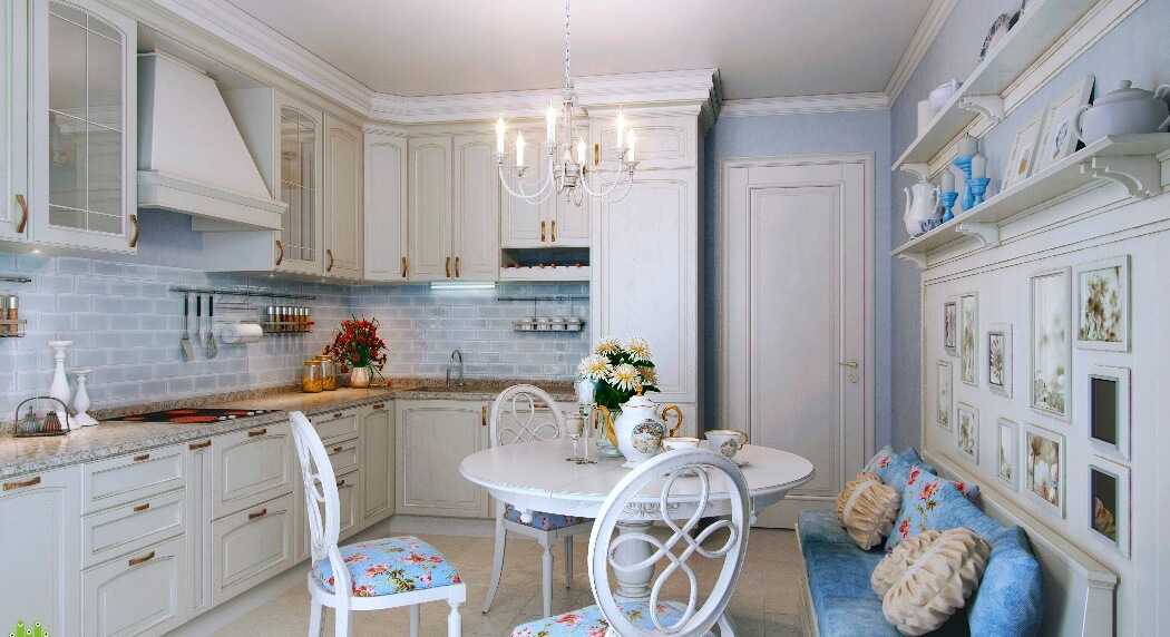 Особенно органично данный цвет впишется в интерьер в деревенском стиле. Естественный природный оттенок неба будет отлично гармонировать с потертыми и состаренными поверхностями провансальской кухни, с текстилем из грубых тканей, с мебелью из массива и натуральными материалами с выраженной фактурой и текстурой.