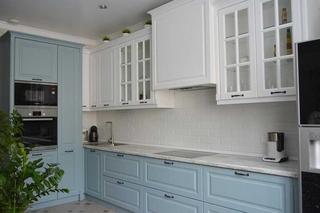 - Традиционное сочетание голубого с белым цветом. Данная цветовая схема, хотя и считается «беспроигрышной» в плане уместности, в то же время имеет некоторые недостатки. Прежде всего, это сочетание холодное, его обязательно нужно разбавить третьим теплым цветом, в противном случае интерьер будет казаться неуютным.