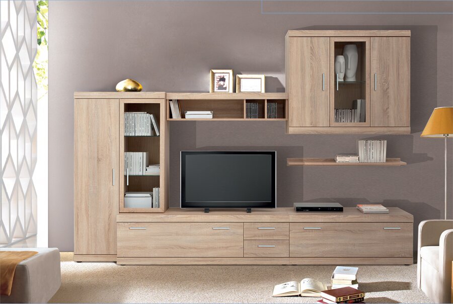 Более практичными для гостиной считаются модульные стенки-горки