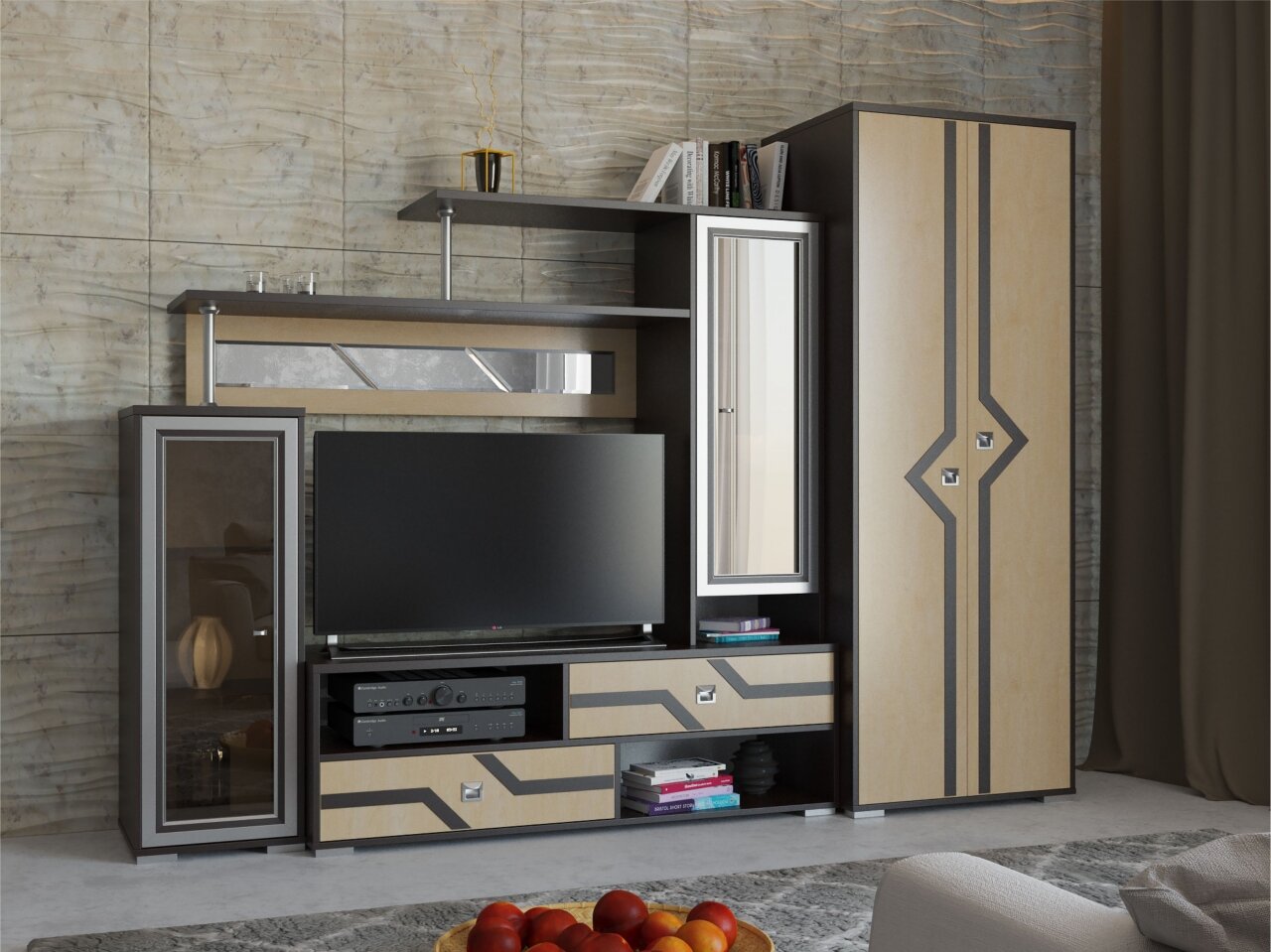 Современная стенка в гостиную в стиле арт-деко