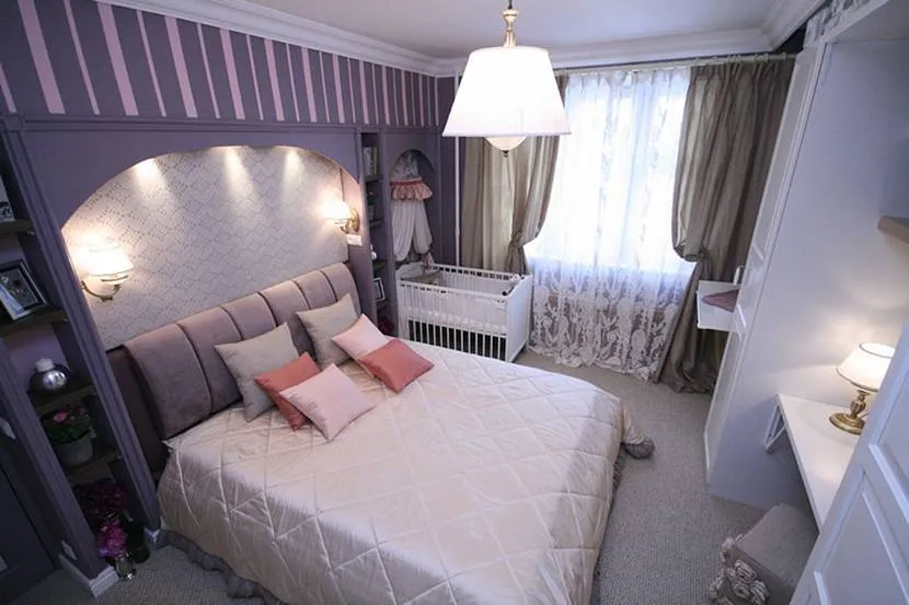 Для ухода за ребенком вам необходимо место в спальне. В просторной комнате разместится мягкое кресло, которое сделает бодрствование рядом с малышом комфортным. Отсутствие квадратов в «хрущевке» требует использования моделей-трансформеров. Рядом с кроваткой можно установить раскладную лавку с подушками.