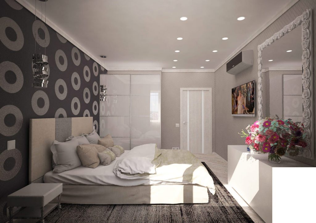Искусственное освещение успешно отделит спальню от гостиной, выигрышно подчеркнет дизайн.