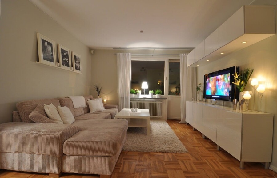 Принимая решение о цветовом дизайне квартиры и, в частности, гостиной, нужно знать оптические свойства выбранных оттенков. Так, бежевый зрительно увеличивает пространство и делает комнату светлее. Даже маленькая гостиная будет казаться больше, если она оформлена преимущественно в светлых тонах бежа.