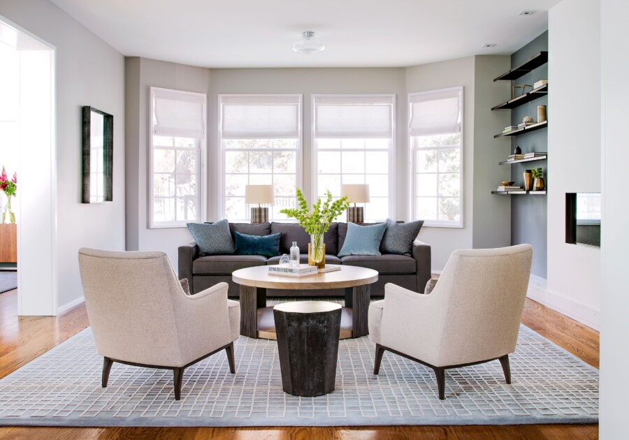 Серый интерьер. Серый и беж — классическое сочетание. Интерьер выглядит стильно и выдержанно, а обивка мебели по тону может быть как теплой, кремовой, так и холодной, песочной; возможны яркие акценты.