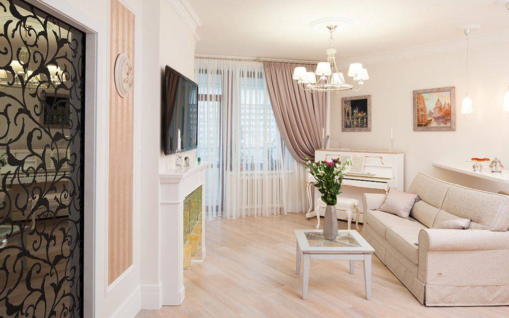 Белый и бежевый цвета хорошо смотрятся в интерьере — делают зал «чистым» и просторным. В таком помещении приятно находиться и отдыхать. Однако неправильное сочетание сделает интерьер монотонным, скучным и смазанным.