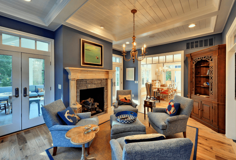 На многочисленных фото классической гостиной видно, что обязательным элементом вступает камин. Каминную полочку можно украсить старинными часами, витиеватыми подсвечниками или статуэтками.