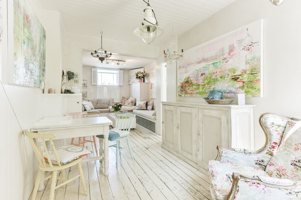 - Обилие белого и пастельных тонов в цветовой гамме.