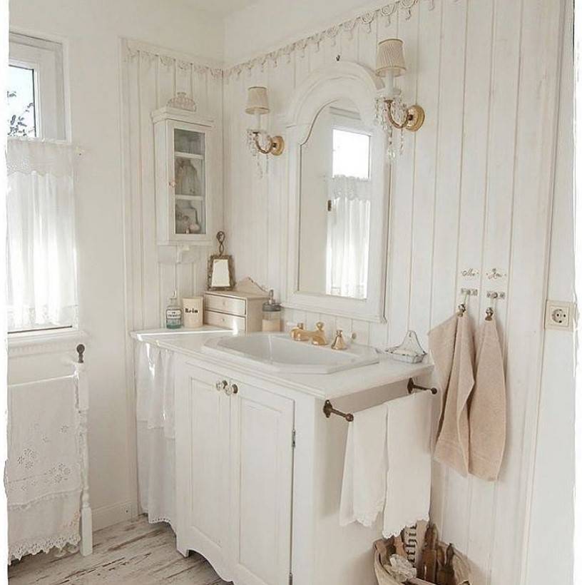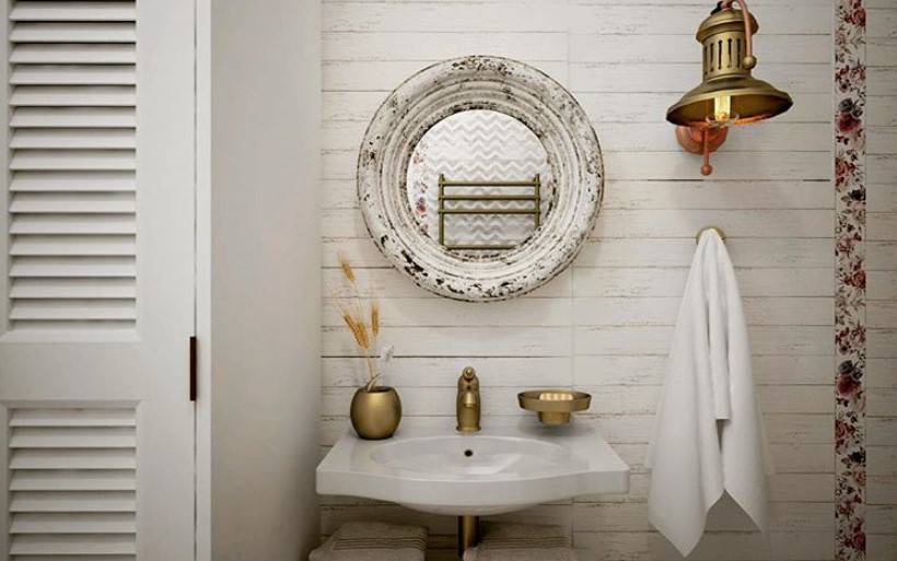 В ванной в стиле прованс не приветствуются нержавеющая сталь и пластик, современная техника. Все предметы несут на себе печать времени. Мебель предпочтительнее деревянная, крашеная. В крайнем случае — искусная имитация под старину. Деревенский колорит обеспечат плетеные корзины, открытые полки, шкафчики с занавесками, кованые элементы и полевые растения в разных видах.