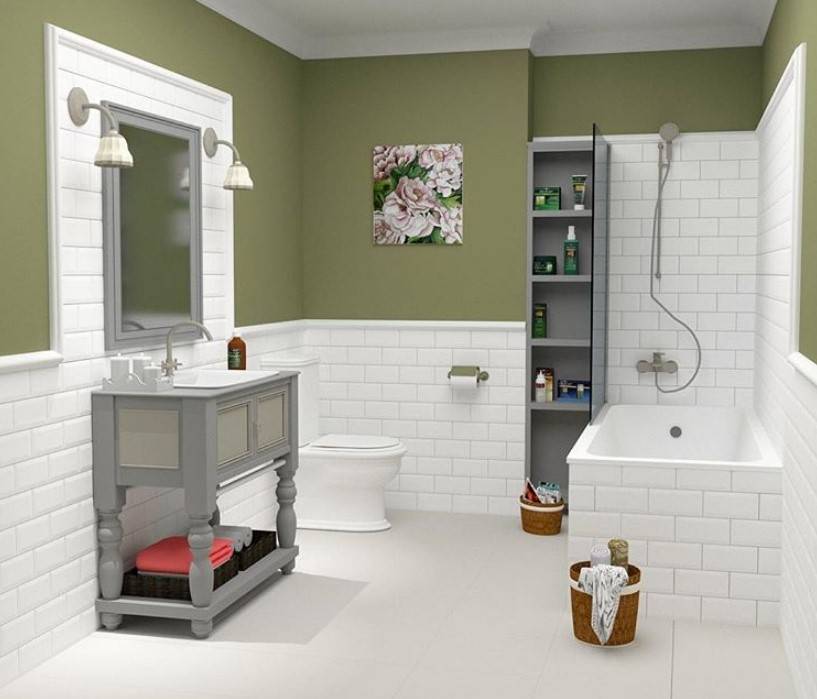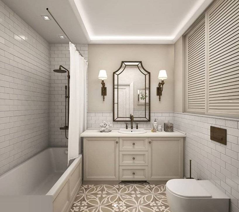 Прованс — это всегда теплая умиротворяющая гамма: бежевый, песочный, голубой, светло-серый, мятный, лавандовый и конечно белый. Они успокаивают и расслабляют, что для ванной комнаты — большой плюс. Кроме того, светлые оттенки создают ощущение свежести и простора, оптически увеличивая помещение.