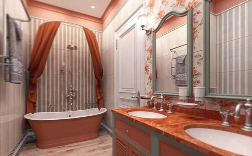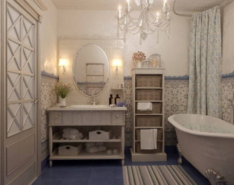 Ванная комната в стиле прованс — самое подходящее место для релаксации. Спокойные цветовые сочетания, обилие света, натуральные материалы и милые сердцу вещи создают особую уютную атмосферу. Для прованса характерны простота и изящество. Основные его черты — это светлые пастельные тона, растительные мотивы, обилие текстиля, просторные помещения. Вот почему этот стиль часто выбирают для оформления загородных домов, где не только большие комнаты, но и санузлы. В квартире ванную часто объединяют с туалетом, чтобы расширить площадь