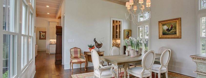 Также для отделки стен используют кирпич, камень, мозаику, облицовочную доску. В стиле Прованс дерево часто окрашивают светлой краской или специально состаривают. То же самое делают с деревянными оконными рамами и дверями.
