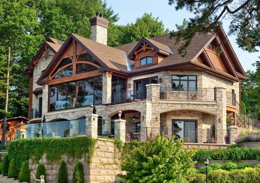 Все постройки этого стиля считаются комбинированными. Сочетание каменных материалов и дерева обеспечивает зданиям необходимую прочность и долговечность. Классический вариант дома – первый этаж с хозяйственными и бытовыми помещениями, и второй, где располагают жилые комнаты.