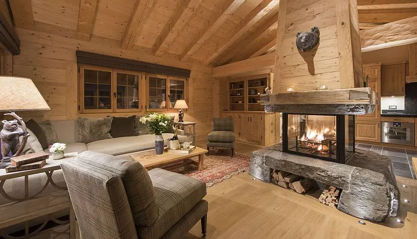 Естественно, не каждый может позволить себе расположить в гостиной настоящий дровяной камин. Однако именно он – 50 процентов успеха в создании интерьера шале. Да никто и не будет спорить, что тепло настоящего огня, звук потрескивающих поленьев – это истинная музыка домашнего уюта и спокойствия.