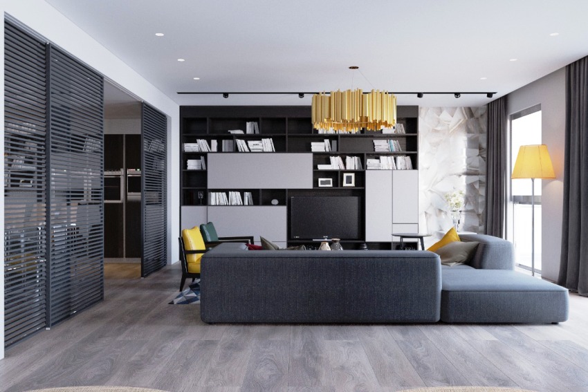 - Модульная мебель. Элементы модульного гарнитура можно устанавливать там, где позволяет планировка. Идеальное решение для маленьких комнат в современном стиле. Вы можете регулярно делать перестановку, перемещая модули по своему усмотрению. Универсальное и практичное интерьерное решение.