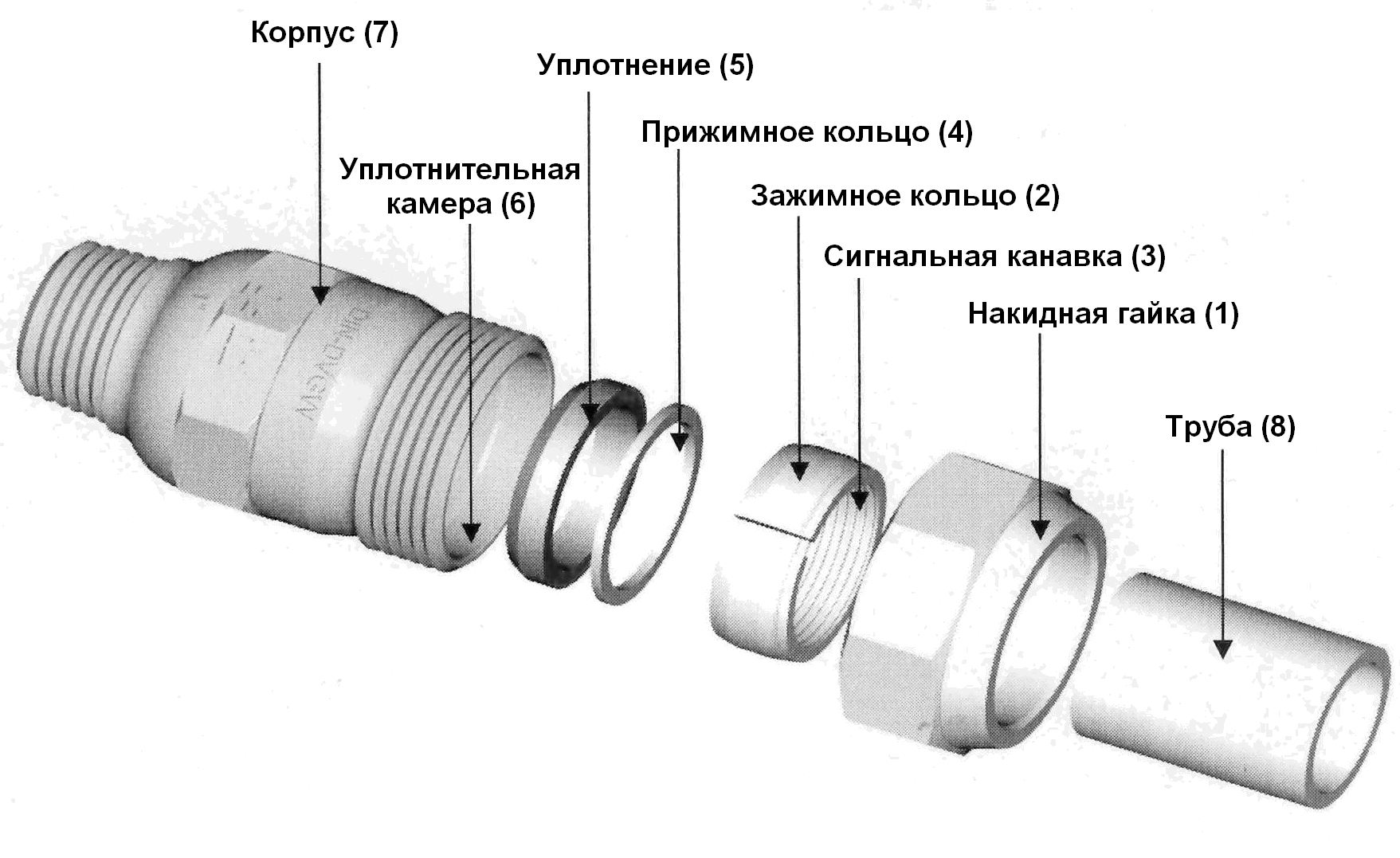 - Проверяют герметичность стыковки. После этого гайку заворачивают до конца.