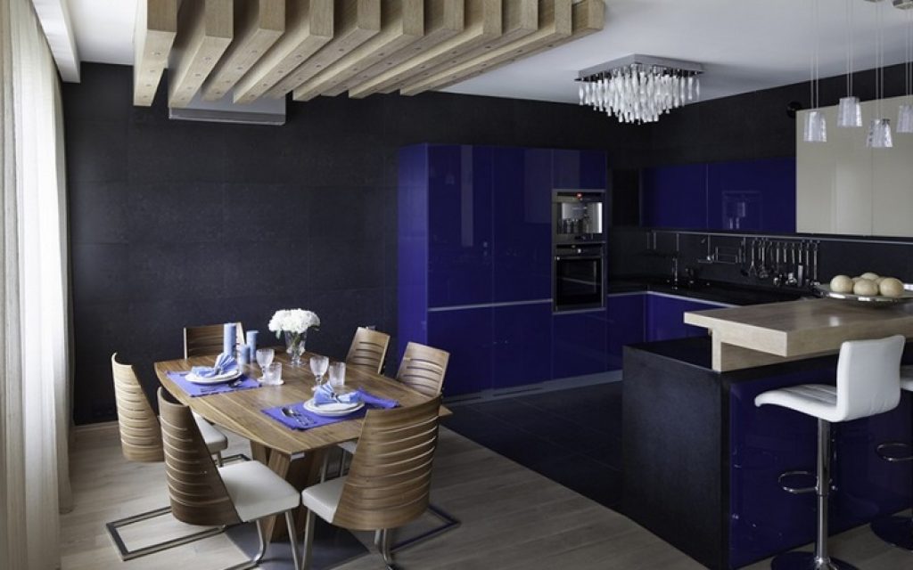 Сложность оборудования кухни-столовой состоит в том, что пространство надо не только правильно разделить на зоны, но и сохранить при этом единство пространства. Для достижения каждой из целей существует несколько приемов.