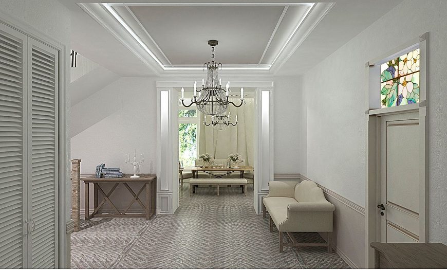 Чтобы узкий холл не вызывал ощущение сдавленности и мрачности, важно правильно выбрать цвет дизайна. Светлые тона визуально добавят объема и расширят помещение