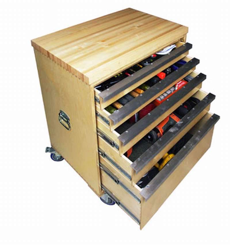 Для частой эксплуатации подходят открытые модели. При создании шкафа стоит оборудовать его выдвижными ящиками. На дверцах и боковых стенках можно установить крепления для всевозможных орудий, аппаратов, электроинструментов.