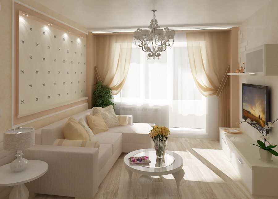 Перенести внимание в центр комнаты поможет направленное освещение, а чтобы границы пространства не бросались в глаза, лучше повесить шторы в тон стенам.