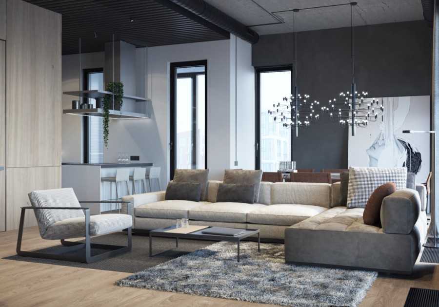 Украсить большую гостиную помогут оригинальная отделка с модной мебелью