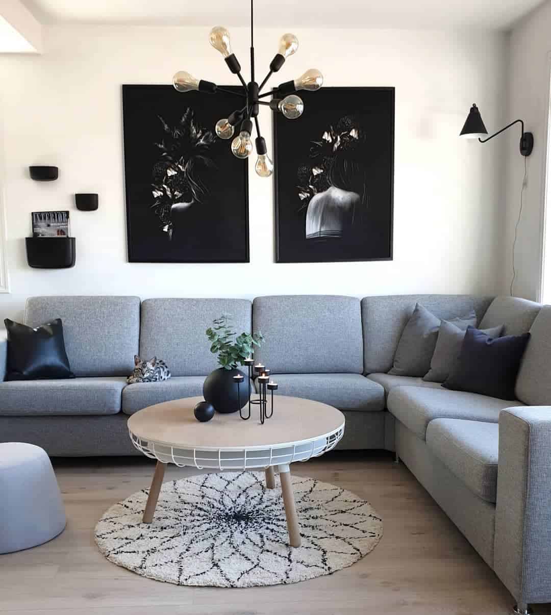 Самый популярный – расположить мягкую мебельную группу подальше от стен комнаты. Взгляд будет цепляться за предметы мебели, границы комнаты растворяться, и помещение не будет казаться таким огромным и театральным. Кстати, большая комната – это именно тот случай, когда в размерах мебели можно себя не ограничивать.