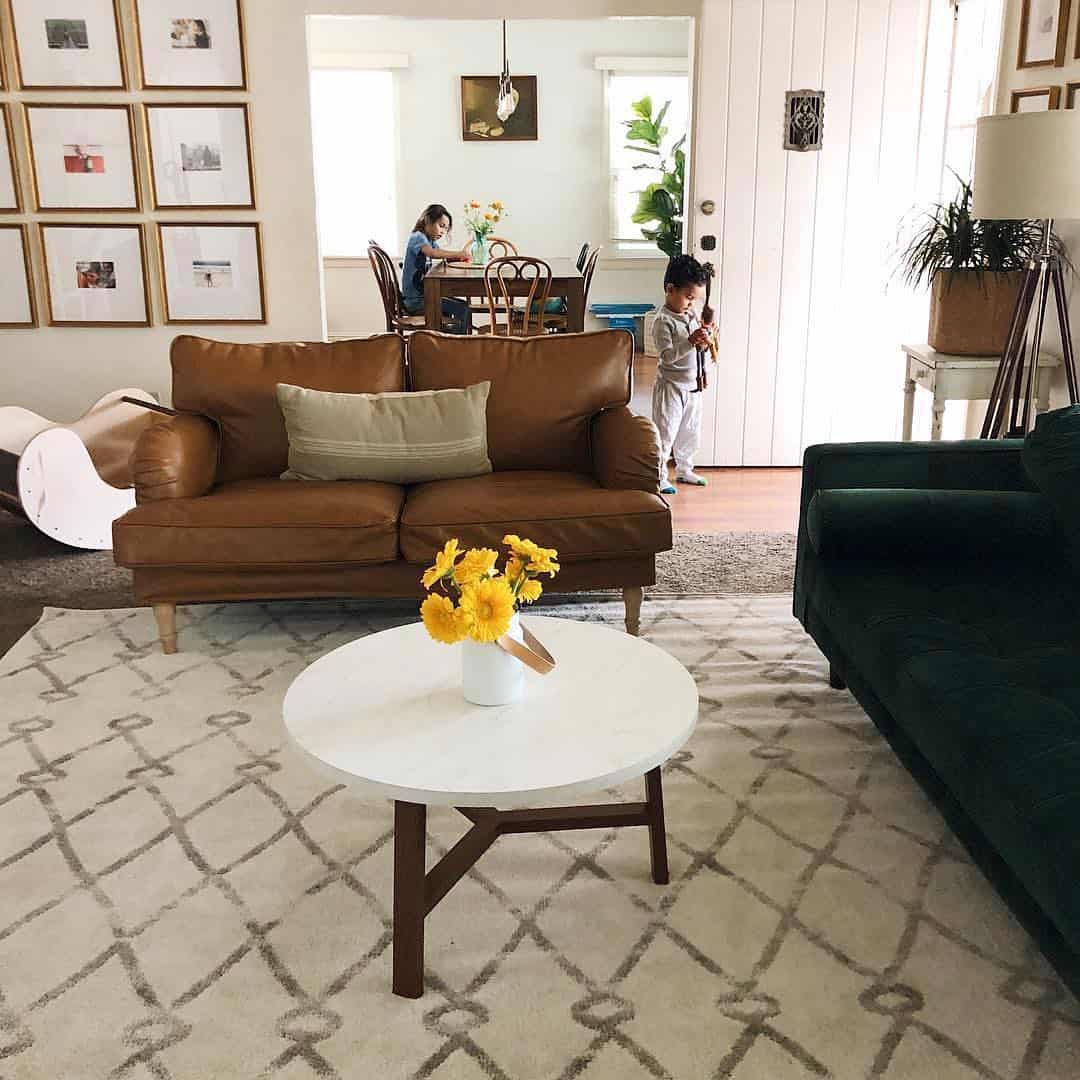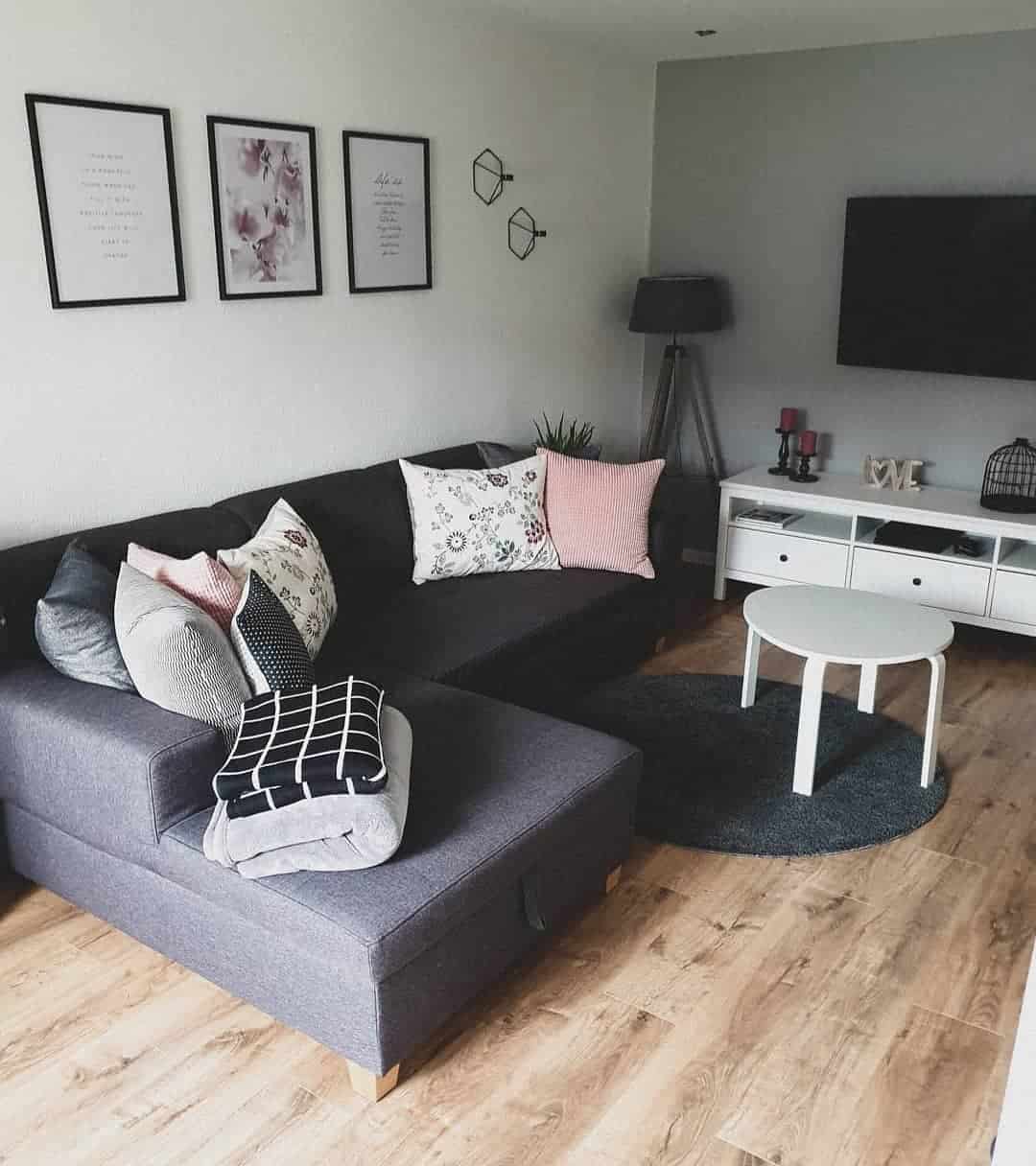 Обзаведитесь таким предметом, как журнальный столик. Он должен иметь небольшие размеры и простой дизайн, поскольку не выполняет основную роль, а лишь улучшает внешний вид комнаты.