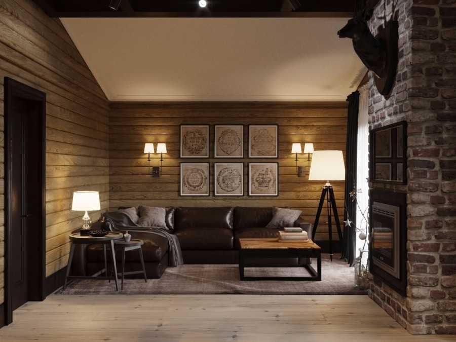 Важно, чтобы материал имел глубокий оттенок и элементы резьбы на стенах с потолками. Оконные проемы должны быть широкими и также из дерева, за которыми будет открываться природный вид