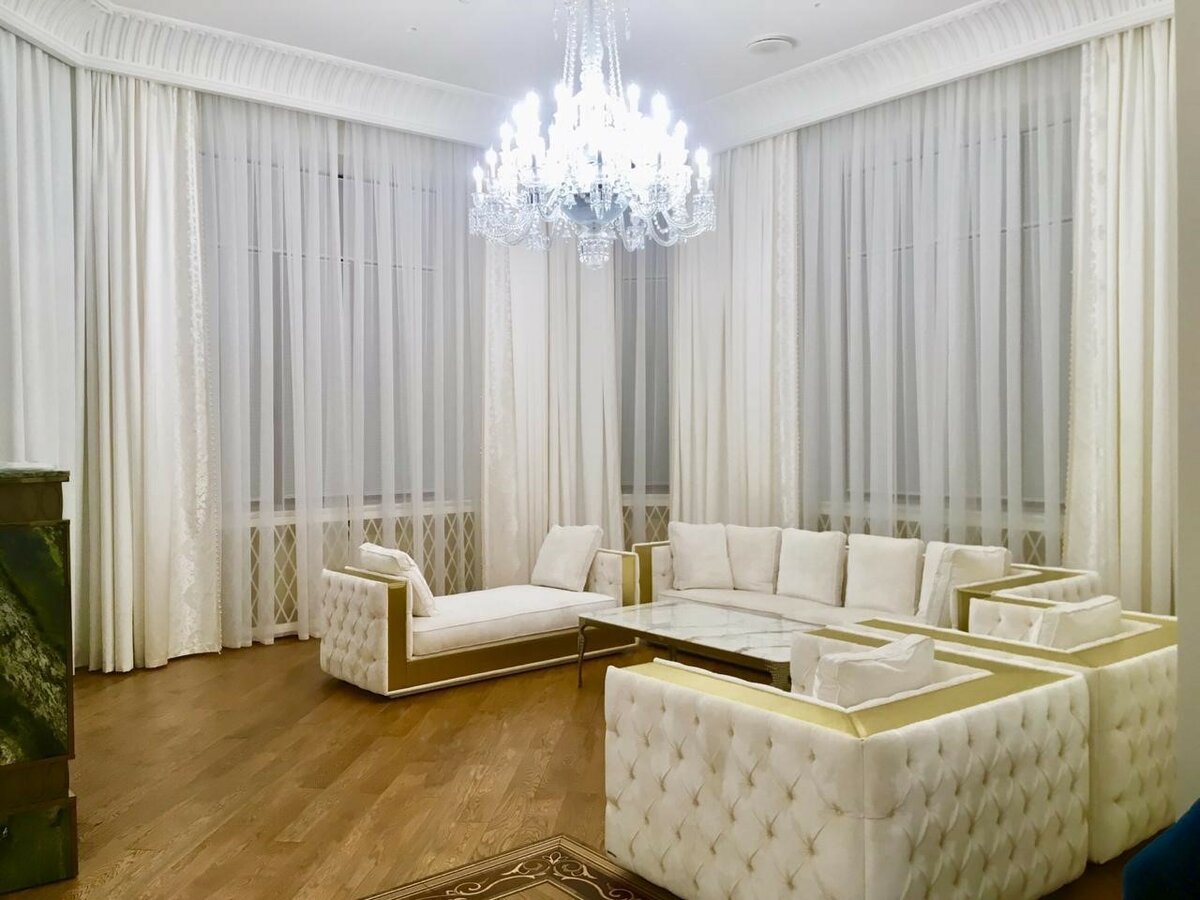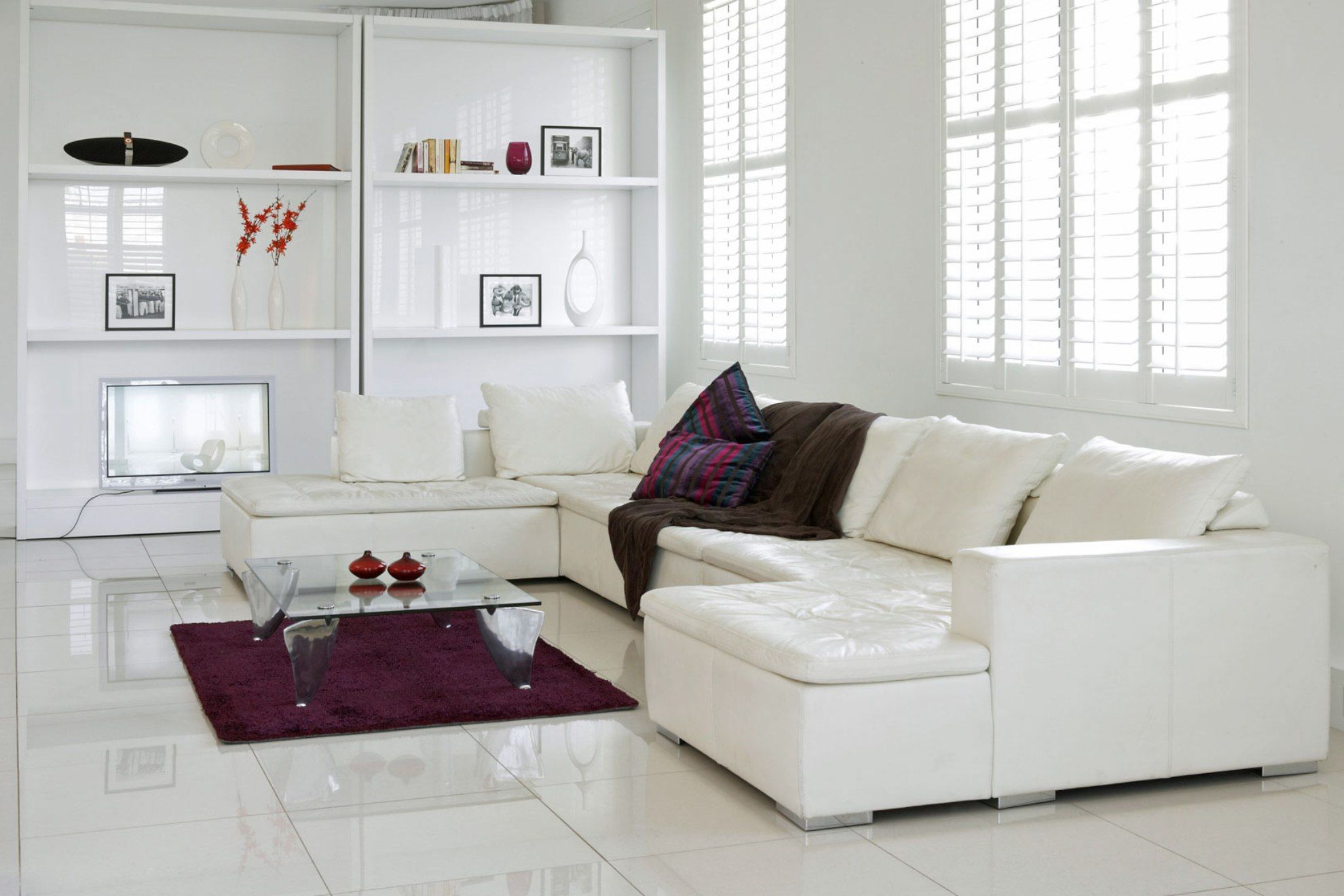 В белом цвете в гостиной могут быть выдержаны поверхности, мебель и шторы.