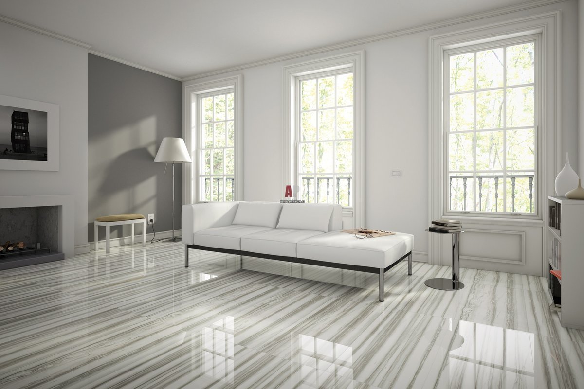 Белый пол в гостиной служит отсылкой к интерьерам домов, принадлежавших аристократам. Чаще всего речь идет о деревянном покрашенном покрытии. Есть еще мраморный вариант или его имитация. Плитку в гостиной стелить нежелательно, но такое оформление возможно. Ее поверхность должна быть глянцевой.